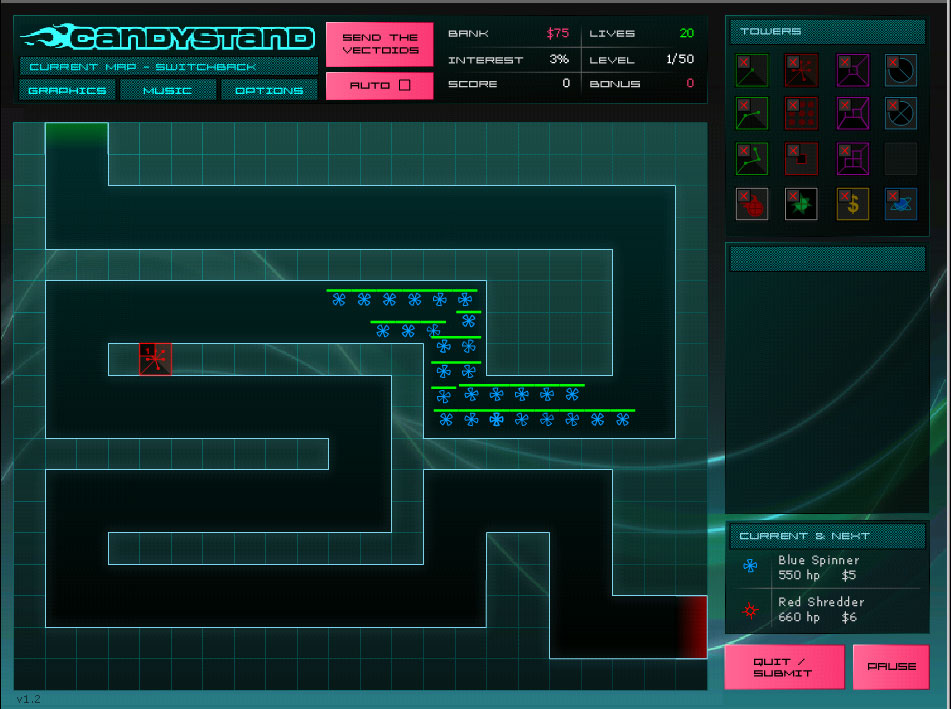 内容は入り口から出てくる敵を逃さないように砲台を配置して迎撃するというもの。